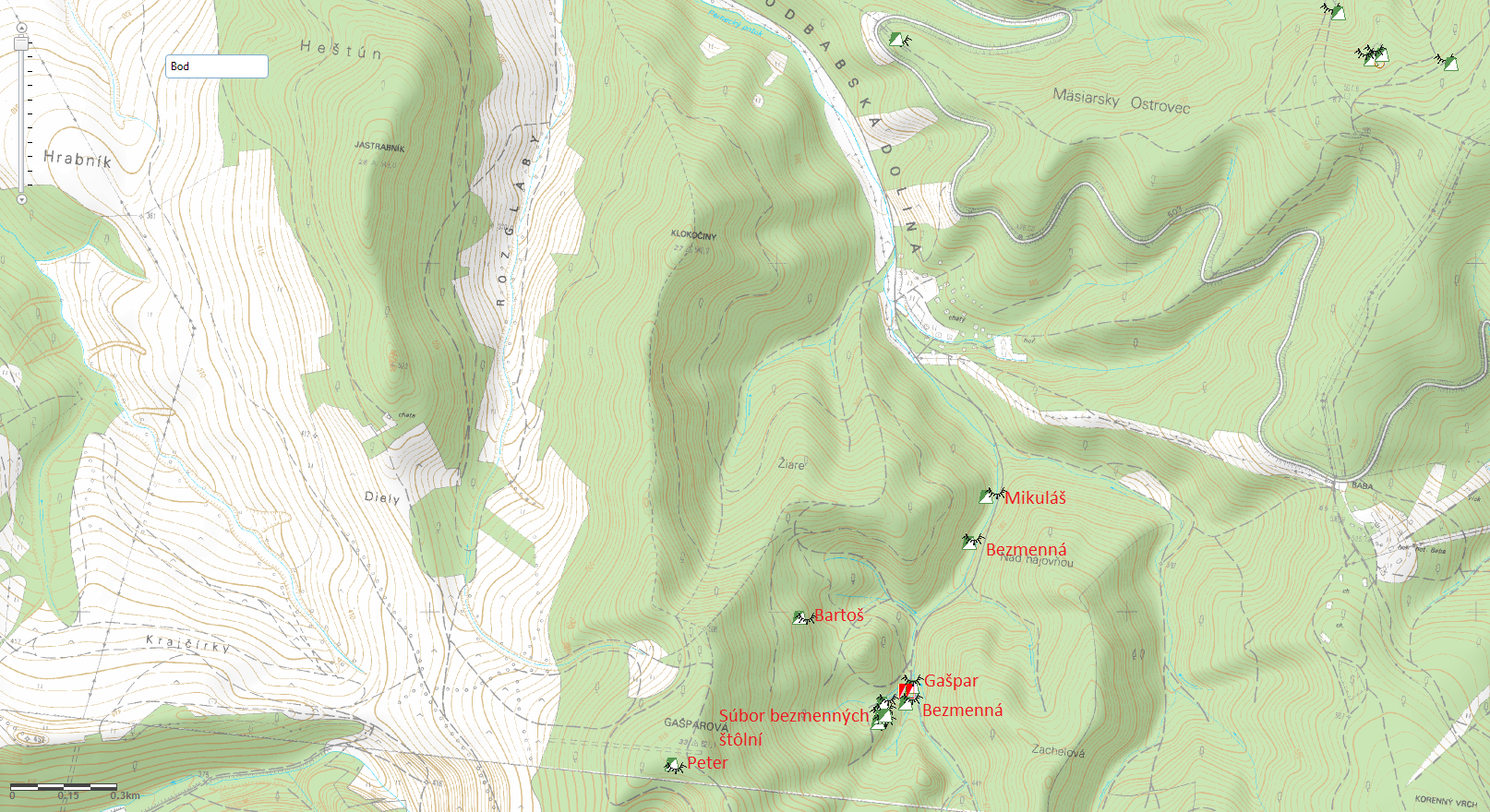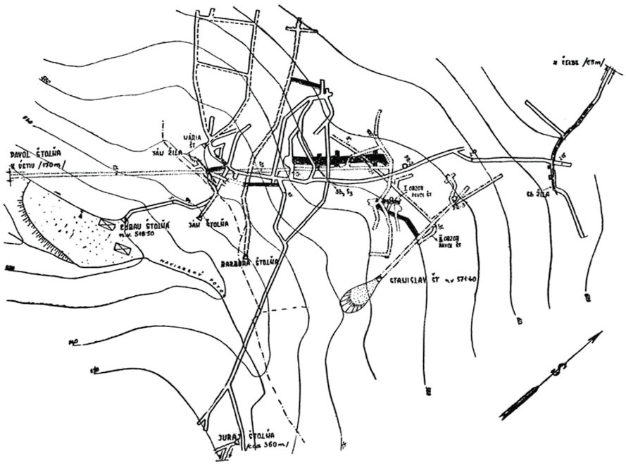 Obr. 3 Mapa banských diel - Podbabská dolina