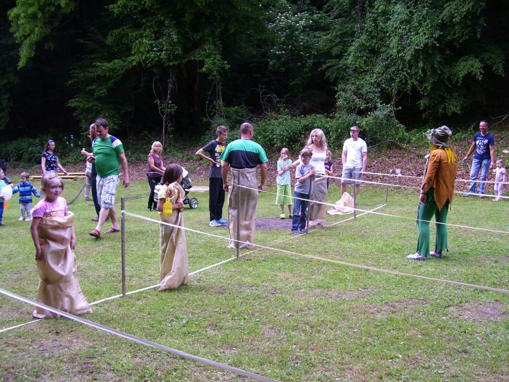 Pri príchode ich privítal Pernecký permoník so svojou pomocníčkou. Na naše veľké prekvapenie veľa detí vedelo, že to bol dobrý banský škriatok. Permoník odovzdal každému dieťaťu lampášik, do ktorého si na lampášikovej súťažnej ceste zbieralo svetielka. Cestou deti čakali rôzne rozprávkové bytosti, ako víly, motýľ, slniečko, Mexičan, ale tiež baba jaga. Súťažná trasa začínala hodom zlatou hrubou do koša, potom si deti mohli vyskúšať streľbu lukom. Stará víla si myslela, že keď jej deti nanosia dostatok vody a ona sa ňou pokropí, tak bude mladá a krásna. Ale naša „rozprávka“ nemala dobrý koniec. Víla je stále len múdra. A znova čakala na deti voda, v tomto prípade však aj spolu s Mexičanom, ktorý deti pustil ďalej len v prípade, že prešli s vodou po kladine. Pri motýľovi Emanuelovi si každý mohol vyskúšať zručnosť v zhadzovaní plechoviek. Baba jaga komplikovala cestu prekážkovou dráhou, kde bolo treba niekedy podliezať, inokedy preskočiť. Netradične sa v kopci nad lesom zjavil rybník, v ktorom bolo potrebné vyloviť čo najviac rýb. Aby deti mohli prejaviť aj svoju predstavivosť mali pripravené stanovište s hádankami. A že neboli vôbec jednoduché potvrdili aj viacerí rodičia. Po postavení čo najväčšej veže si každý mohol vyskúšať aj ryžovanie zlata. Keďže sa nejaké zlato našlo, miesto neprezradíme. Musíme konštatovať, že sa v Sádku stretli len samé šikovné deti a zvládli všetky stanovištia za čo si na konci cesty vyslúžili odmenu vo forme medaily s permoníkom. Naši hasiči nám predviedli záchrannú akciu. Našťastie nikde nehorelo, ale keby náhodu raz, tak vieme, že sú dobrí a tiež aj vtipní. Vodou z hadíc postriekali všetkých účastníkov na lúke. Deti sa tiež veľmi aktívne a radi zapojili do „hasenia“. Na lúke ešte čakali na deti a rodičov ďalšie spoločné hry. Veľký úspech malo lyžovanie na doskách a tiež skákanie vo vreci, ktorému neodolali aj niektorí dospelí. Ďalej sme sa zabavili pri presune balónikov medzi hlavami, či pri nosení surových vajíčok. Do akcie sa aktívne zapojili aj naši poľovníci, ktorí sponzorsky pripravili pre deti párky. VEĹKÉ ĎAKUJEM patrí organizátorom, ľuďom čo kosili trať, všetkým pomocníkom na stanovištiach, hasičom, poľovníkom, osádke stánku s občerstvením, pani pekárke medailí a všetkým, ktorí svojou prítomnosťou podporili tento deň.